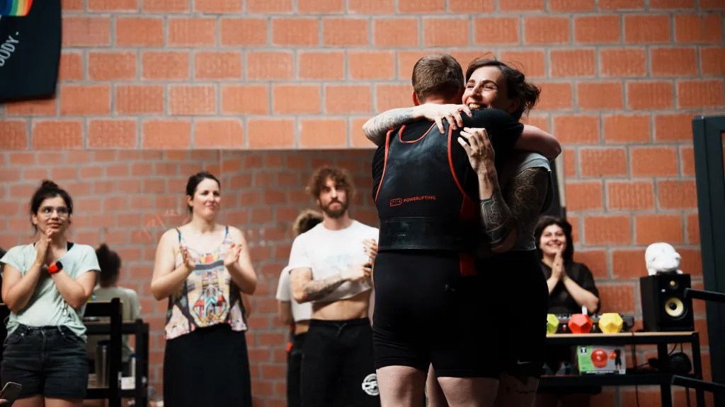 Het platform staat voor de graffitimuur en daarrond kunnen mensen de lifters aanmoedigen en supporteren. Elke lift, of het nu 50kg is of 200kg, krijgt evenveel aandacht en applaus.