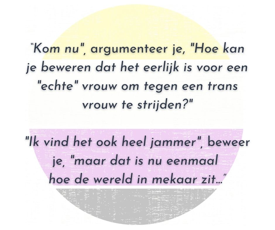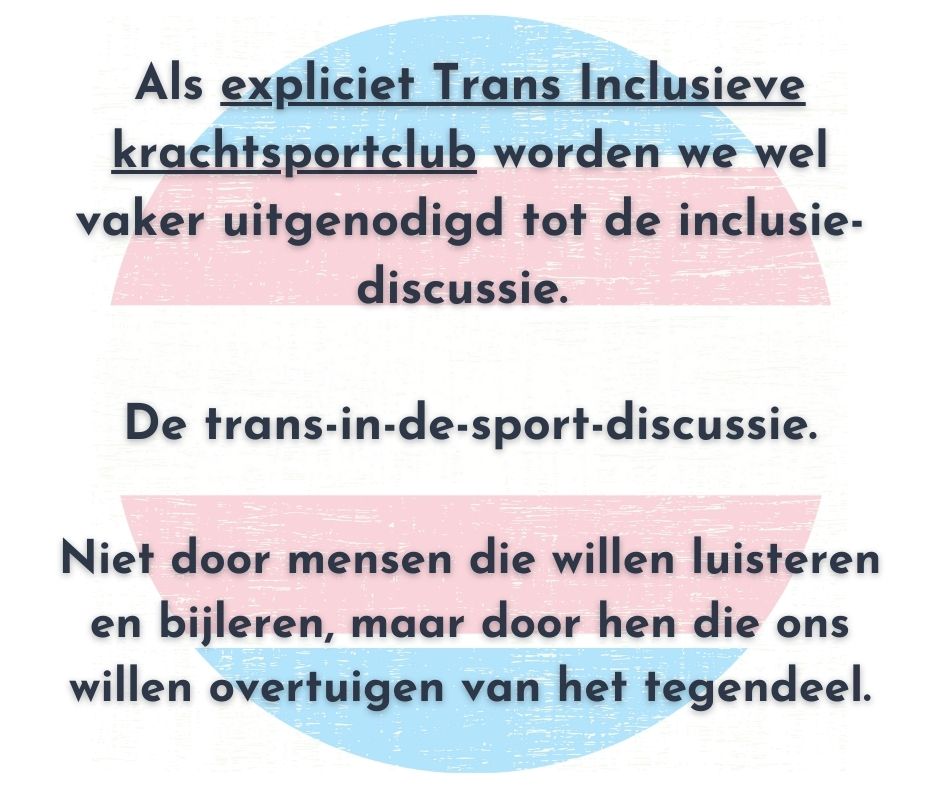 ✨ De workshop zal gaan over de situatie van transpersonen in (kracht)sportclubs, over de effecten van (medische) transitie op sportprestaties, over het concept ‘fairness’ in de sportwereld, en over de maatschappelijke gevolgen van exclusie van trans personen in de topsportwereld.