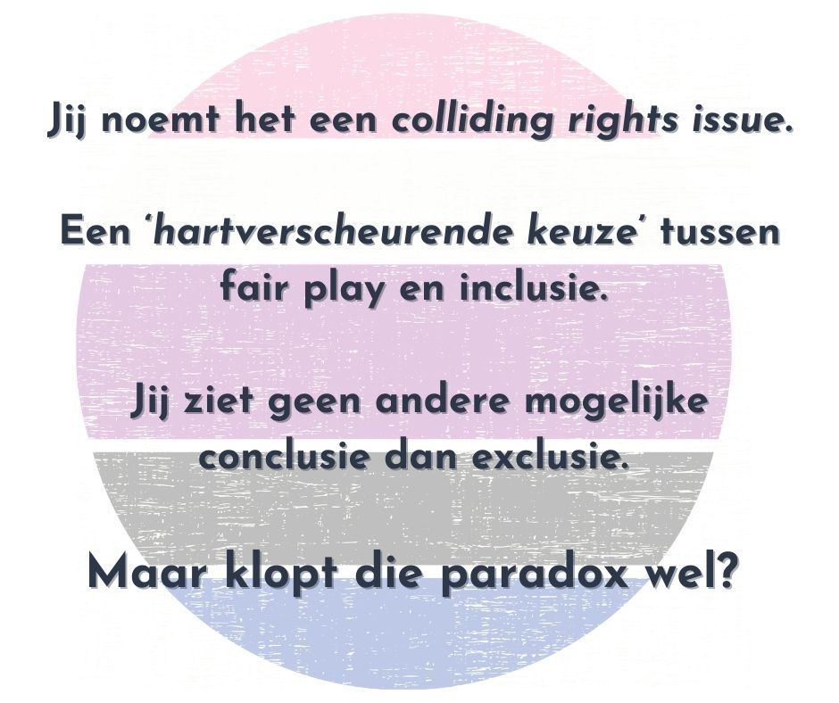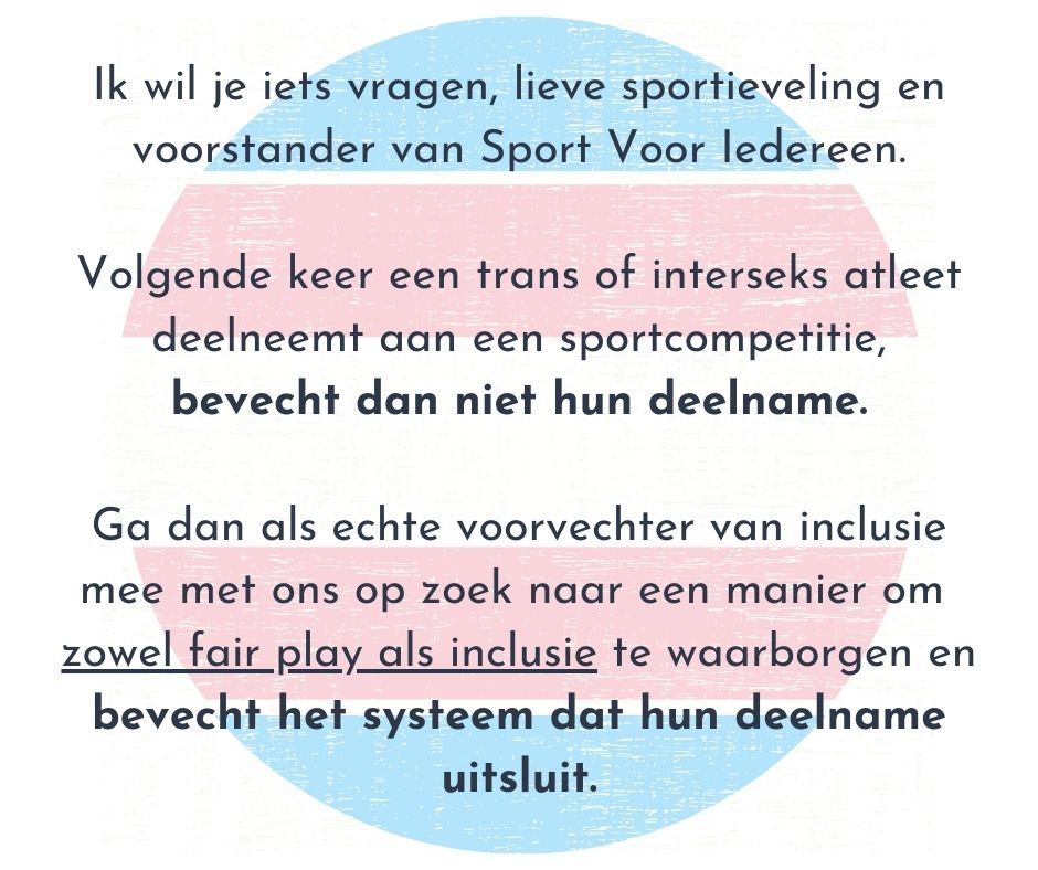 Sport kent geen gender! Zowel cis- als trans personen gaan graag naar de sportclub. Echter, de toegang is niet voor beide bevolkingsgroepen even voor de hand liggend. Nog te veel sportclubs hebben impliciet of expliciete uitsluitingsmechanismen waardoor trans personen de toegang tot het beoefenen van een sport bemoeilijkt wordt.