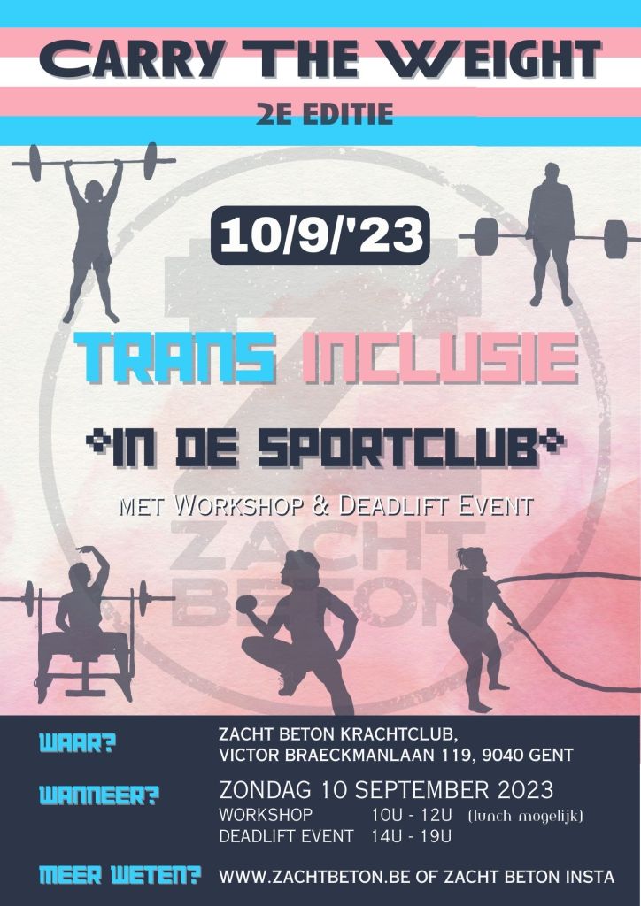 Op zondag 10 september organiseert Zacht Beton de tweede editie van ‘Carry The Weight in het teken van 🏳️⚧️Trans Inclusie *in de sportclub*🏳️⚧️